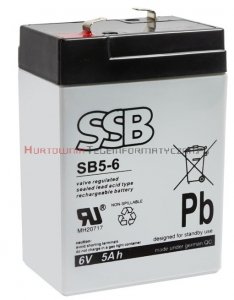 SSB SB5-6 Akumulator AGM 6V 5Ah Towar na zamówienie - zapytaj o dostępność 38,75 PLN* * z podatkiem VAT SSB SB5-6 Akumulator AGM 6V 5Ah Towar na zamówienie - zapytaj o dostępność